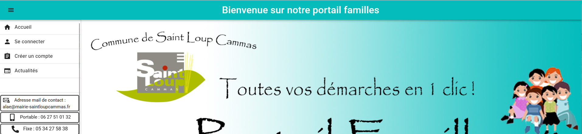 LES ACCUEILS DE LOISIRS Responsable : Eric CHAMINANT Coordonnées : 05.34.27.58.38 ou 06.27.51.01.32 E-mail : alae@mairie-saintloupcammas.fr ACCUEIL DE LOISIRS «PERISCOLAIRE» L’Accueil de Loisirs périscolaire fonctionne tous les jours de classe, mercredi après-midi inclus. Seuls les enfants âgés d’au moins 3 ans sont acceptés à l’Accueil de Loisirs périscolaire Horaires et Organisation Lundi et Jeudi : 7h30 à 8h50, de 12h00 à 13h50 et de 16h00 à 18h30 Mardi, Vendredi : 7h30 à 8h50, de 12h00 à 13h50 et de 16h30 à 18h30. Mercredi : 7h30 à 8h50 et pour l'après-midi de 12h00 à 14h00 avec possibilité de départ échelonné après le repas, puis de 14h00 à 18h30 avec également la possibilité de départ échelonné, de préférence après le goûter (16h30). A l’arrivée de l’enfant : l’heure d’arrivée sera notée sur la tablette par l’équipe d’animation. Au départ de l’enfant : Les parents ou les personnes dûment habilitées devront entrer par le hall de l’école et en sortir après avoir récupéré l’enfant et enregistré le départ sur la tablette par l’équipe d’animation. Durant l'interclasse, le départ et l'arrivée des enfants avant 13 h 50 est interdit. ACCUEIL DE LOISIRS « EXTRASCOLAIRE » L’Accueil de Loisirs extrascolaire fonctionne les jours de vacances scolaires (sauf au mois d'août et la semaine comprise entre Noël et le 1er de l’an). Seuls les enfants âgés d’au moins 3 ans sont acceptés à l’Accueil de Loisirs extrascolaire. Horaires En période de vacances : 7h30 - 18h30 PORTAIL FAMILLES Le Portail Famille regroupe toutes les informations et les démarches relatives aux accueils de loisirs et restaurant scolaire. A quoi ça sert ? Le Portail Famille vous permet de gérer, les réservations, modifications ou annulations, le paiement des factures (restaurant scolaire, accueil de loisirs périscolaire et extrascolaire), le dossier de votre/vos enfant(s). Vous y trouverez également, le règlement intérieur des services, les menus du restaurant scolaire, les tarifs…